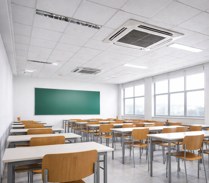 Nos interventions permettent de garantir une qualité d’air intérieur optimale, des installations de ventilation performantes et le respect des normes sanitaires et réglementaires propres à ces structures accueillant du public.